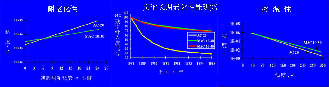 MAC??改性瀝青全面提高了瀝青的路用性能,可以使瀝青的PG等級由原來的PG64-22提高到PG76-22、PG82-28,軟化點通常達80℃度以上,用它鋪筑的路面,有良好的耐久性和較高抗車轍能力,能有效防止或減少路面病害的發(fā)生,延長了路面的使用壽命。
