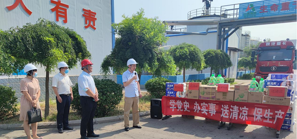炎炎夏日送清涼,濃濃關(guān)懷沁人心,為推動黨史學習教育走深、走實,2021年8月4日,山東高速建材集團黨委副書記、工會主席李鋒一行3人赴華瑞公司桓臺加工廠開展“學黨史、辦實事、送清涼、保生產(chǎn)”慰問活動。
