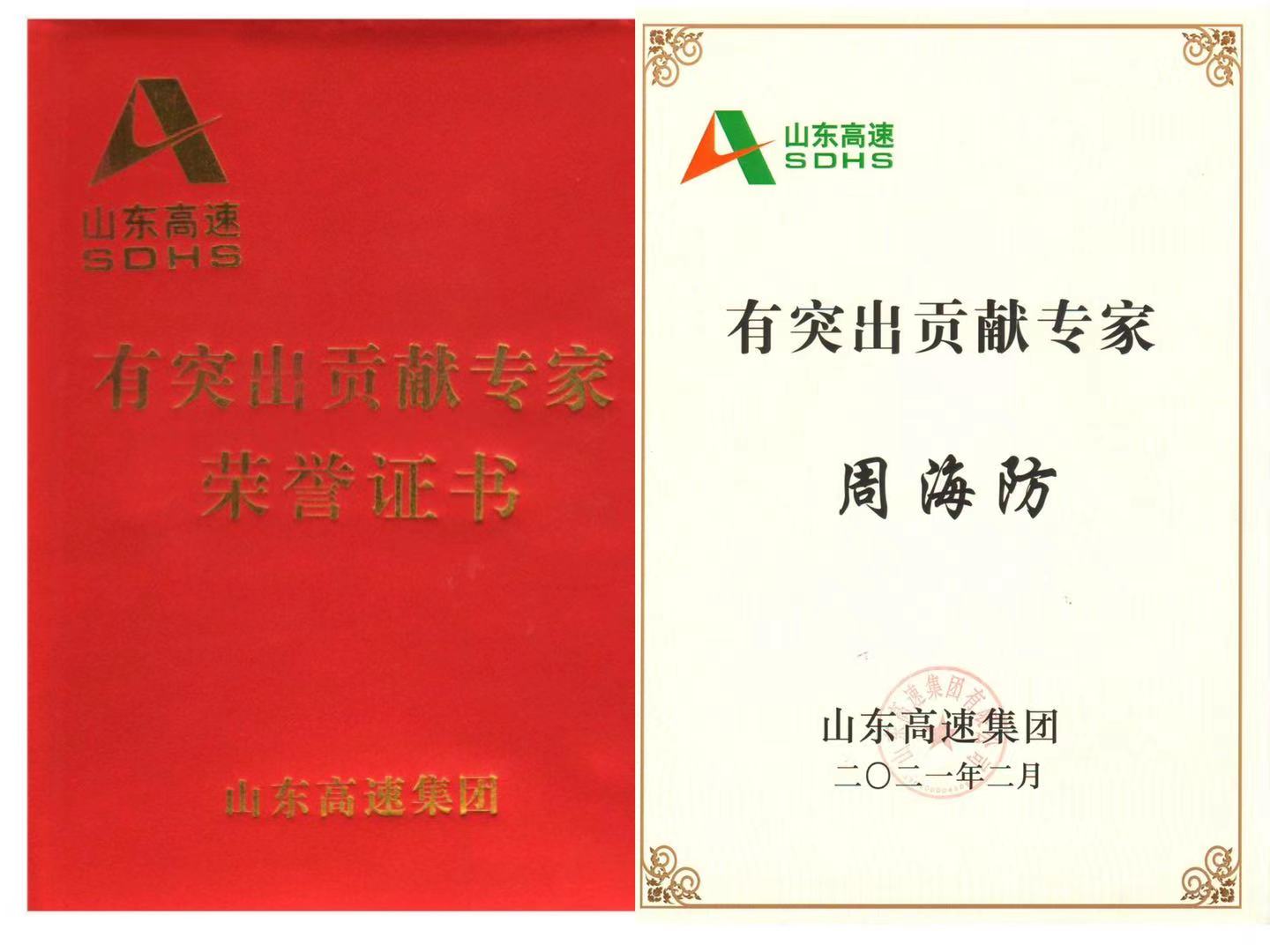 近日,在山東高速集團(tuán)召開的一屆二次職工(會員)代表大會暨2021年度工作會議上,公司副總經(jīng)理周海防同志被授予2020年度“山東高速有突出貢獻(xiàn)專家”榮譽(yù)稱號。山東高速有突出貢獻(xiàn)專家是集團(tuán)公司設(shè)立的專業(yè)技術(shù)人才專項(xiàng)榮譽(yù),選拔對象是長期在專業(yè)技術(shù)崗位上工作,為集團(tuán)公司發(fā)展做出突出貢獻(xiàn)的專業(yè)技術(shù)人才。
