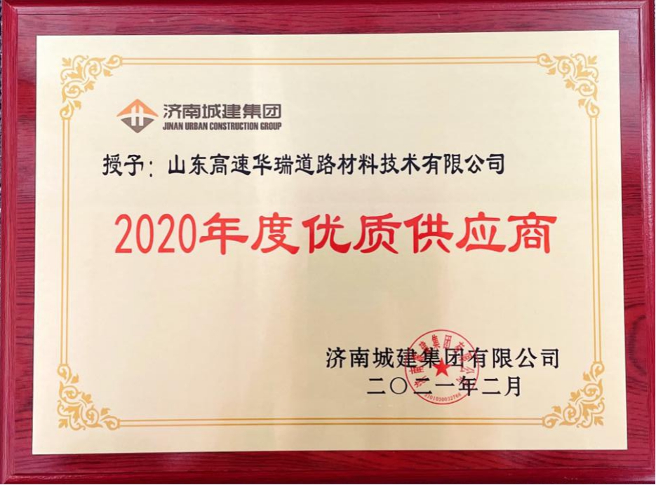 華瑞公司榮獲濟(jì)南城建集團(tuán) “2020年度優(yōu)質(zhì)供應(yīng)商”榮譽(yù)稱號