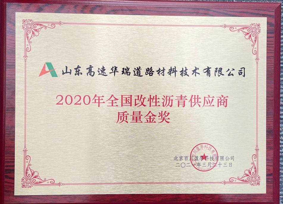 此次華瑞公司榮獲“2020年全國(guó)改性瀝青供應(yīng)商質(zhì)量金獎(jiǎng)”,是行業(yè)各界和合作伙伴對(duì)華瑞公司產(chǎn)品品質(zhì)、優(yōu)質(zhì)服務(wù)和綜合實(shí)力的認(rèn)可與肯定。華瑞公司將致力于為廣大客戶提供更加優(yōu)質(zhì)、便捷和高效的服務(wù),努力將華瑞公司打造為全國(guó)瀝青貿(mào)易商“山東加工廠”,不斷提升華瑞公司行業(yè)影響力和品牌形象。