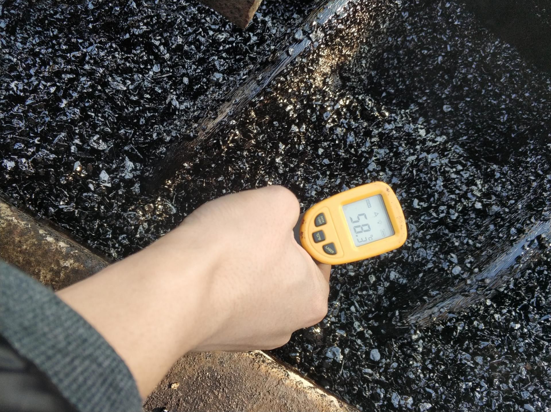 當(dāng)天施工時氣溫僅有3~5℃并伴有大風(fēng),普通熱拌瀝青已不允許施工。 但我公司新一代MAC冷拌瀝青混合料僅對石子稍微加熱,出料溫度50~60℃,完全滿足拌和、攤鋪、碾壓各工序?qū)Φ蜏睾鸵仔缘囊蟆?路面碾壓成型降至接近氣溫后即具有較高的強(qiáng)度,可立即開放交通。 采用的開級配混合料為骨架嵌擠結(jié)構(gòu),承載力高,不易變形,易于施工控制,節(jié)省石料和瀝青。 現(xiàn)場觀摩的交通局領(lǐng)導(dǎo)、外國專家和施工單位對MAC冷拌瀝青混合料的低溫施工性能和路面強(qiáng)度一致認(rèn)可,并給予較高評價。