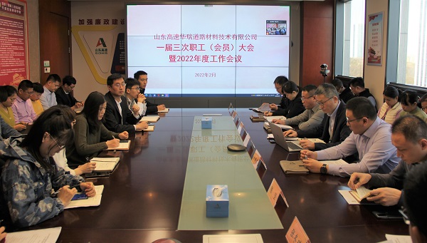 2月21日,山東高速華瑞道路材料技術(shù)有限公司召開一屆三次職工(會員)大會暨2022年度工作會議,全面總結(jié)2021年工作,安排部署2022年重點任務。華瑞公司黨支部書記、董事長岳現(xiàn)堂出席會議并講話;華瑞公司總經(jīng)理盧新春作年度生產(chǎn)經(jīng)營工作報告;華瑞公司黨支部副書記孔超主持會議。