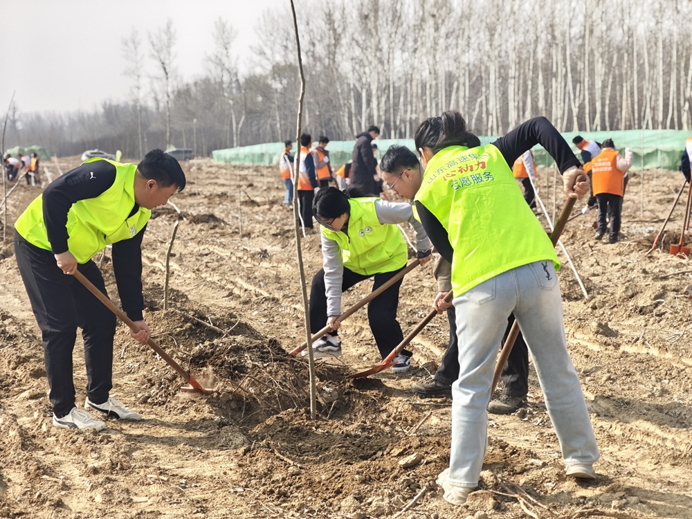 在林業(yè)技術(shù)人員的指導(dǎo)下,大家分工協(xié)作,揮鍬鏟土、扶苗填坑、培土澆水,每個環(huán)節(jié)都一絲不茍,現(xiàn)場呈現(xiàn)出一派熱火朝天的勞動景象,一株株新栽種的樹苗迎風(fēng)挺立,為初春的大地增添了一抹新綠。