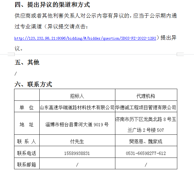山東高速華瑞道路材料技術(shù)有限公司選取加工廠2022年底生產(chǎn)線維修改造施工方項(xiàng)目成交候選人公示