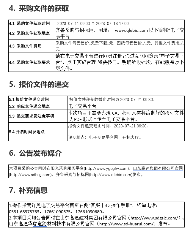 山東高速華瑞道路材料技術(shù)有限公司選取大罐區(qū)儲罐護欄更換及水管線更換施工方項目項目采購公告