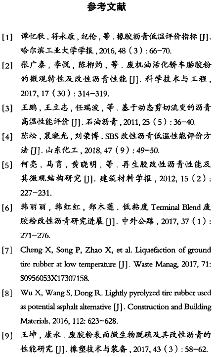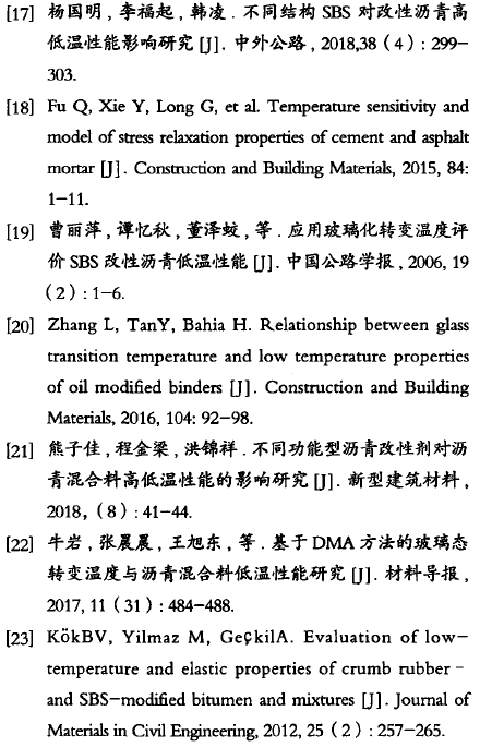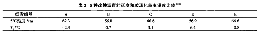c)玻璃化轉(zhuǎn)變溫度從粘彈性角度分析改性瀝青的低溫性能,兼具理論和實際意義,可以有效反映改性瀝青的低溫性能;然而,采用該指標(biāo)評價改性瀝青的研究相對較少,其對不同種類改性瀝青低溫性能的適用性仍有待進(jìn)一步開展。